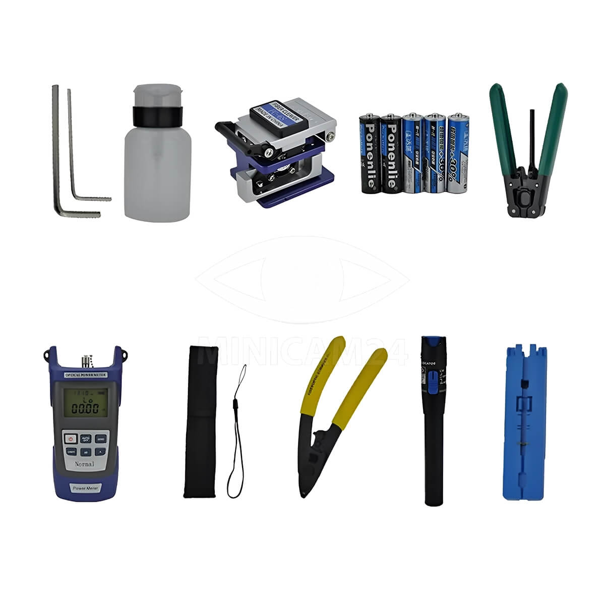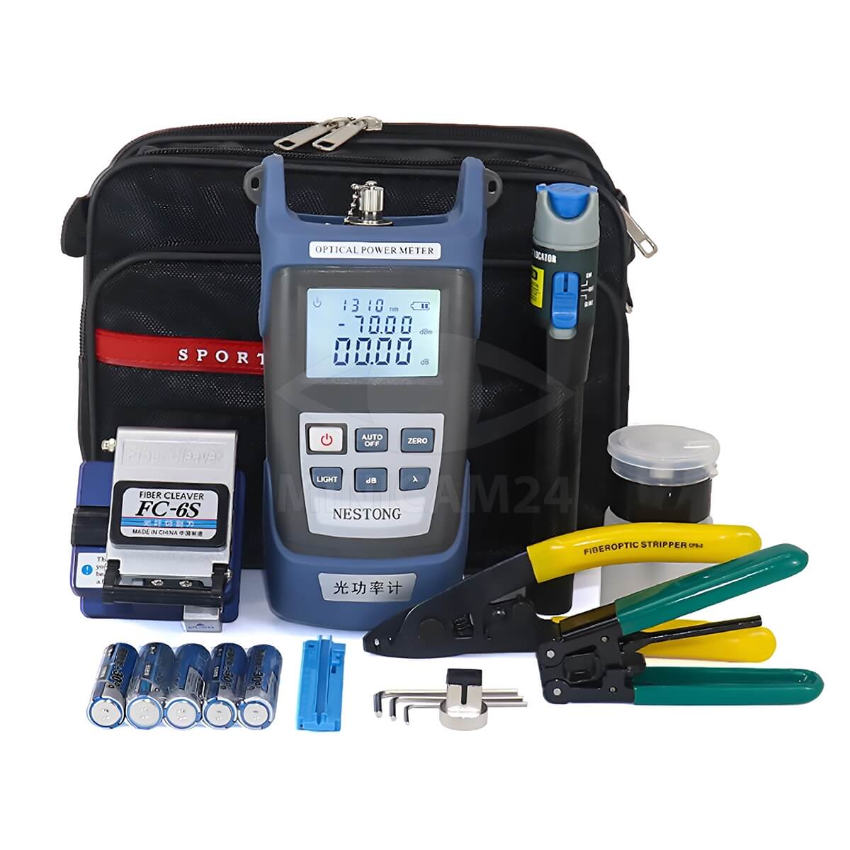 Набор инструментов FTTH Nerdis с интерфейсом 2,5 мм (FC/SC/ST) и питанием от пяти батарей типа AA обеспечивает вам все необходимое для успешной работы с оптическим волокном.