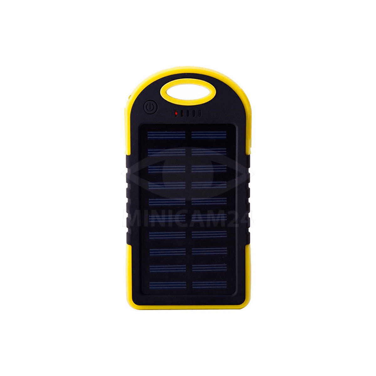 Повер банк в противоударном прорезиненном корпусе, оснащенном солнечной панелью. На торце корпуса предусмотрен разъем USB 5 В 2.1А. Power bank может заряжаться как через него, так и пополнять свой заряд от солнечной батареи. Есть индикация уровня заряда.