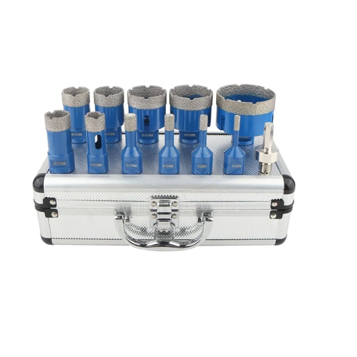 Переходник с шестигранной головкой 3/8 на M14 обеспечивает совместимость с большинством угловых шлифмашин (УШМ). Все коронки упакованы в прочную алюминиевую коробку, которая обеспечивает надежное хранение и защиту инструмента. Этот набор станет незаменимым помощником для профессионалов и любителей, обеспечивая высокое качество реза и долговечность в эксплуатации.